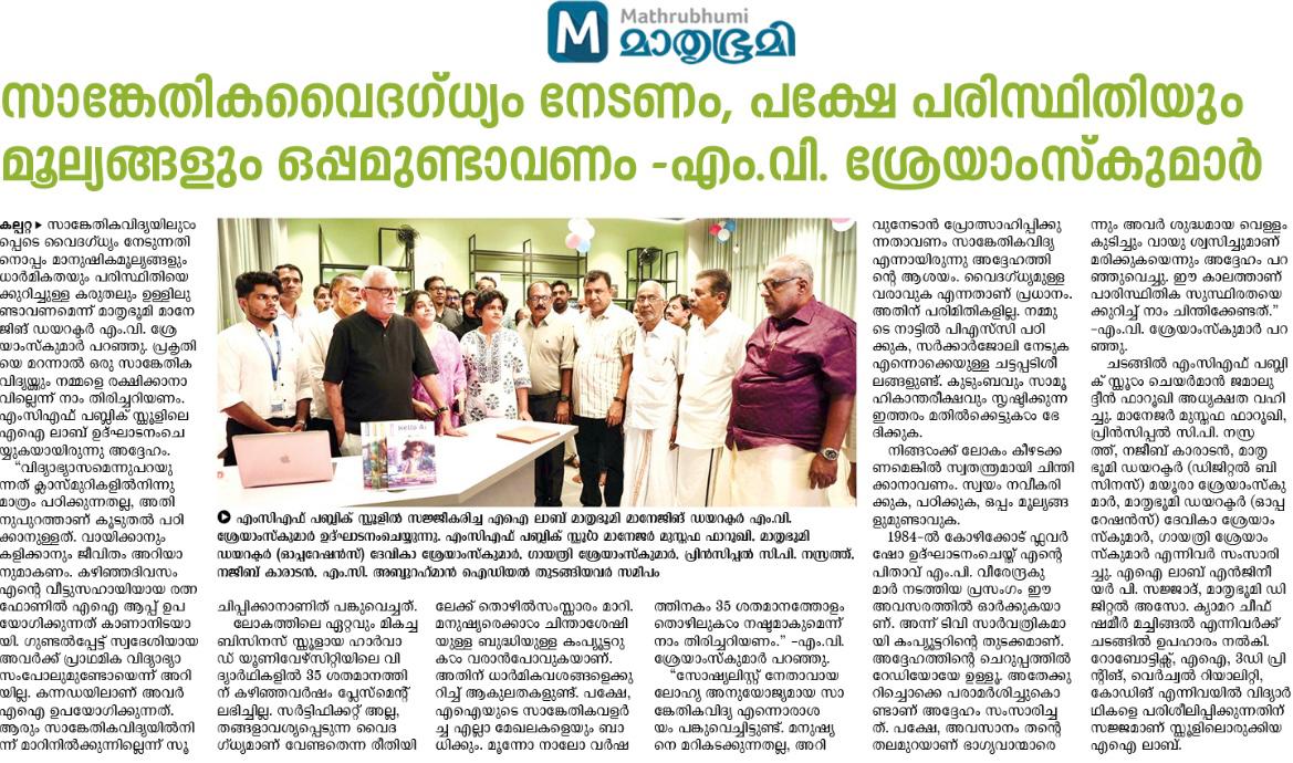 The lab was formally inaugurated by Shri. M. V. Shreyams Kumar, Managing Director of Mathrubhumi, highlighting the crucial link between media, technology, and regional development. The ceremony itself was a testament to innovation, featuring a modern, tech-forward opening.